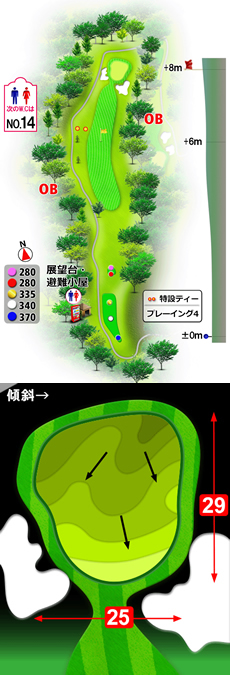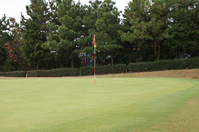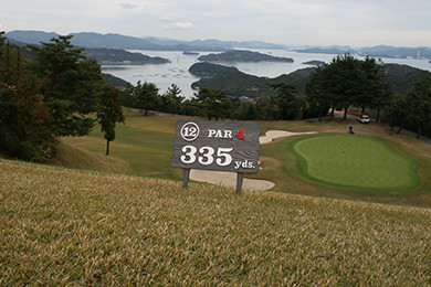 眺望の素晴らしいホール。距離は短いが風が強いことが多いので飛距離よりも正確さが要求される!