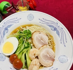 ピリっと唐辛子が効いた鶏ガラ酢醤油で美味い!!